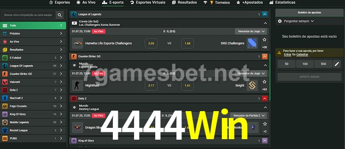 A aposta 4444Win oferece aos jogadores a experiência mais conveniente de apostas em eSports!
